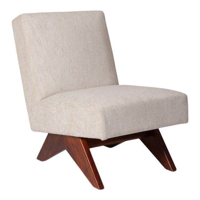 Jeanneret Upholstered Armless Lounge Chair In Beige Chairish